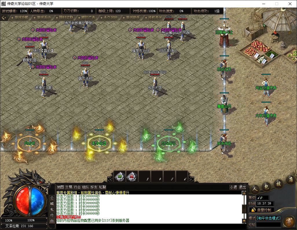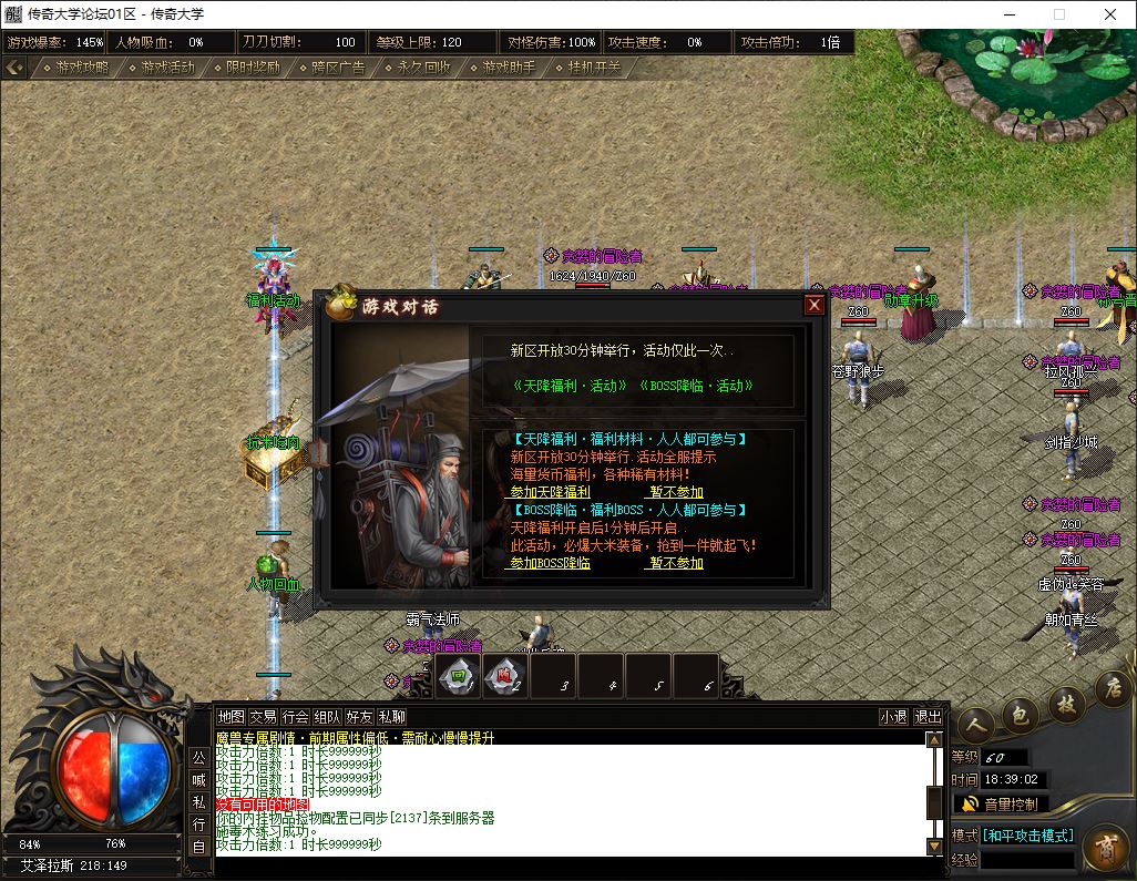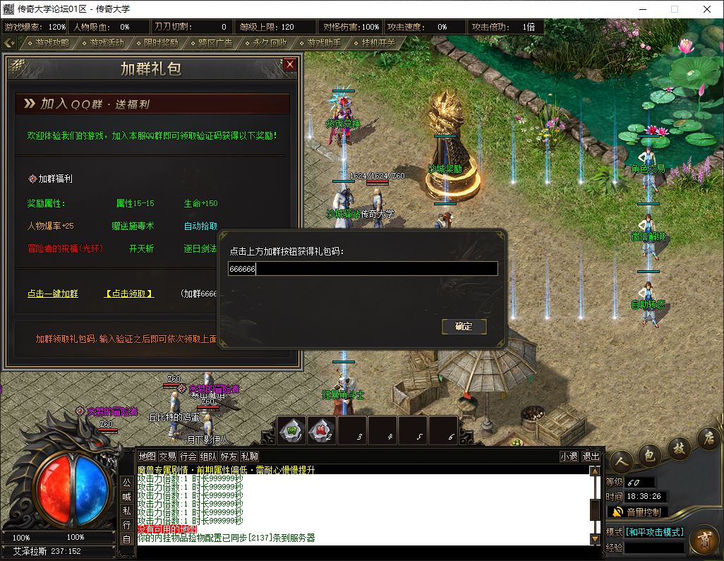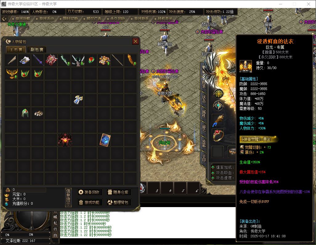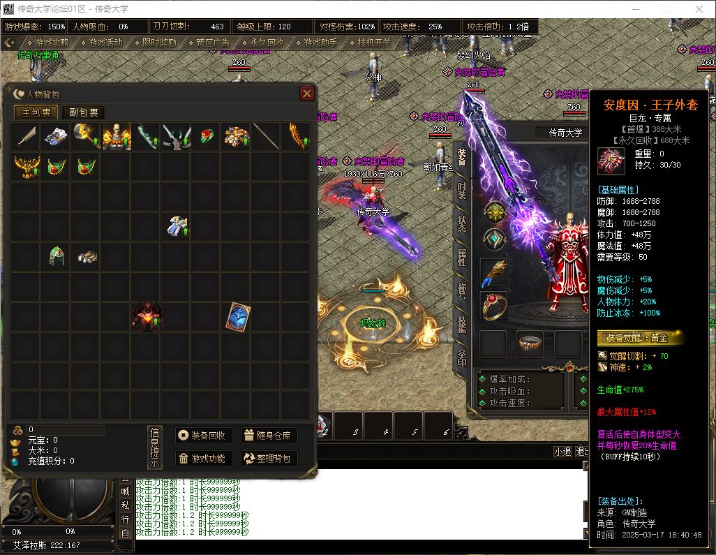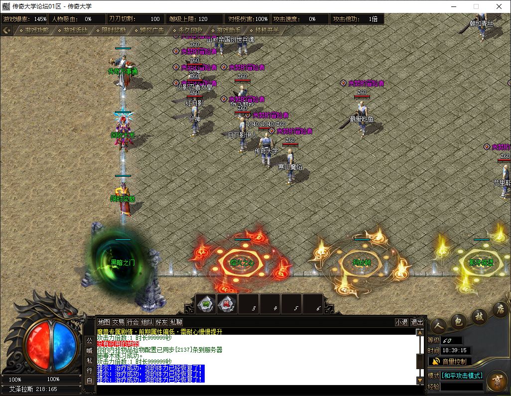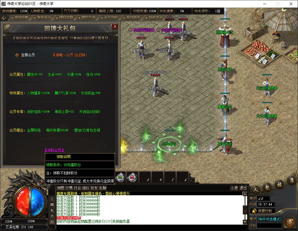 2、标配: 143元档 ( 38元宝+105大米) → 至尊会员 + 狂暴之力 + 沙捐榜一 = 挂机 半月 回收 群体吸怪 鞭尸 十步 擒龙手 一万切割(1大陆满)